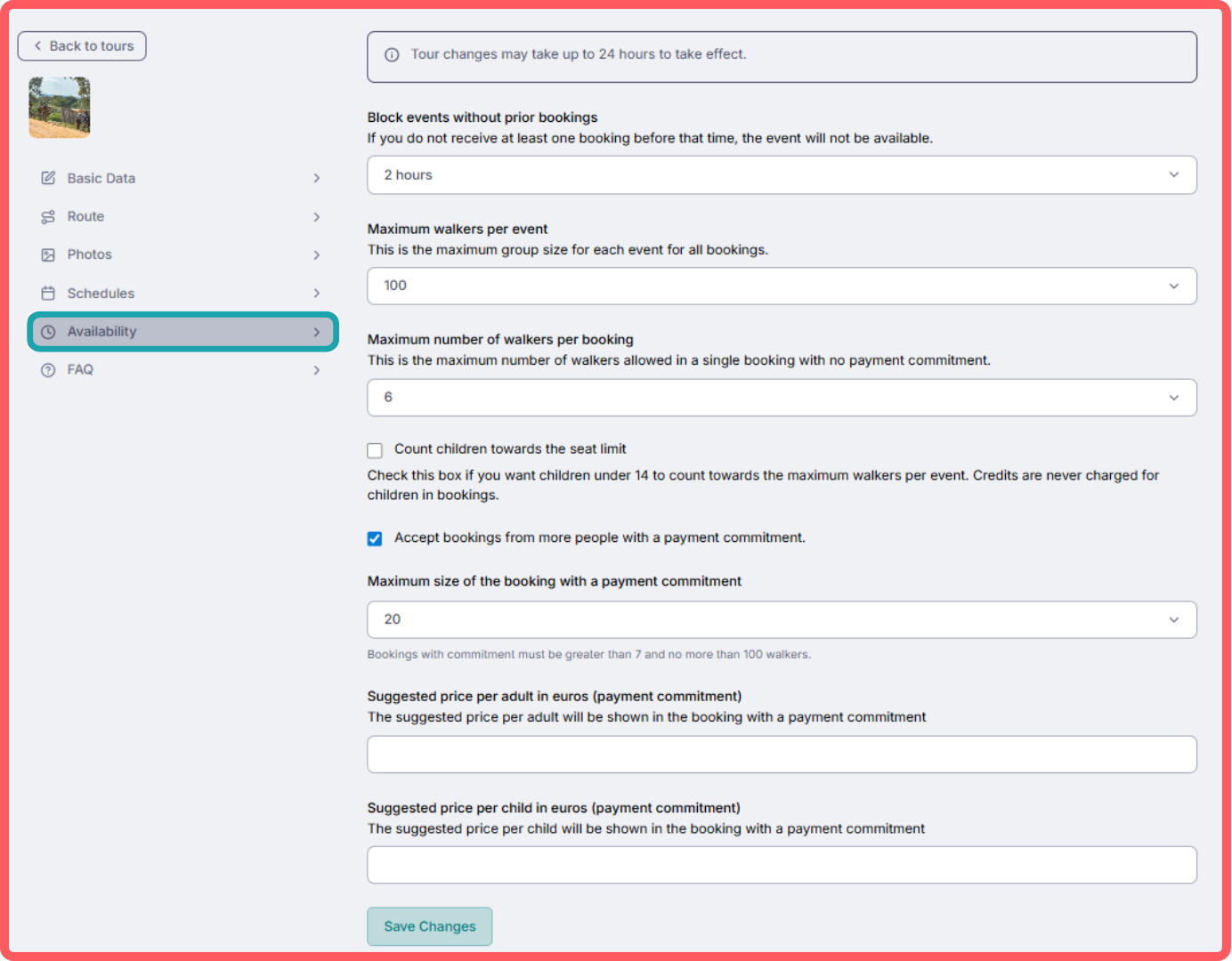 This option helps you organize better and prevents you from having to do the tour if no one has signed up before a certain time. You need to define how much in advance you require at least one booking for the event to remain active.