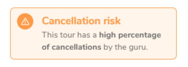 A canceled booking creates a terrible experience and completely disrupts travelers' plans. The high number of cancellations by gurus has led to hundreds of complaints from dissatisfied travelers who will never book with GuruWalk again.